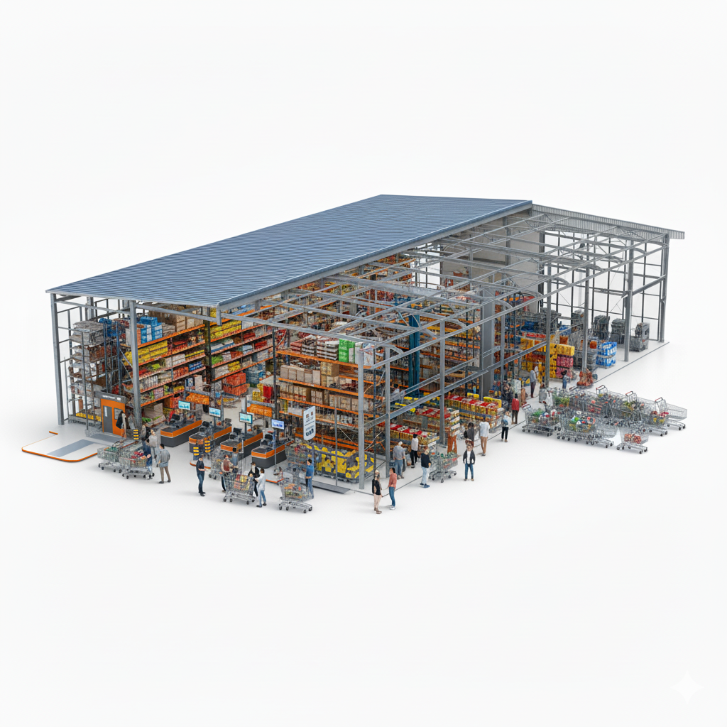 Современные торговые объекты из металлоконструкций — это быстрое и выгодное решение для запуска или расширения розничного бизнеса. Такие здания позволяют создать современное, функциональное и привлекательное пространство для торговли, общественного питания или оказания услуг в кратчайшие сроки и без лишних бюрократических сложностей.